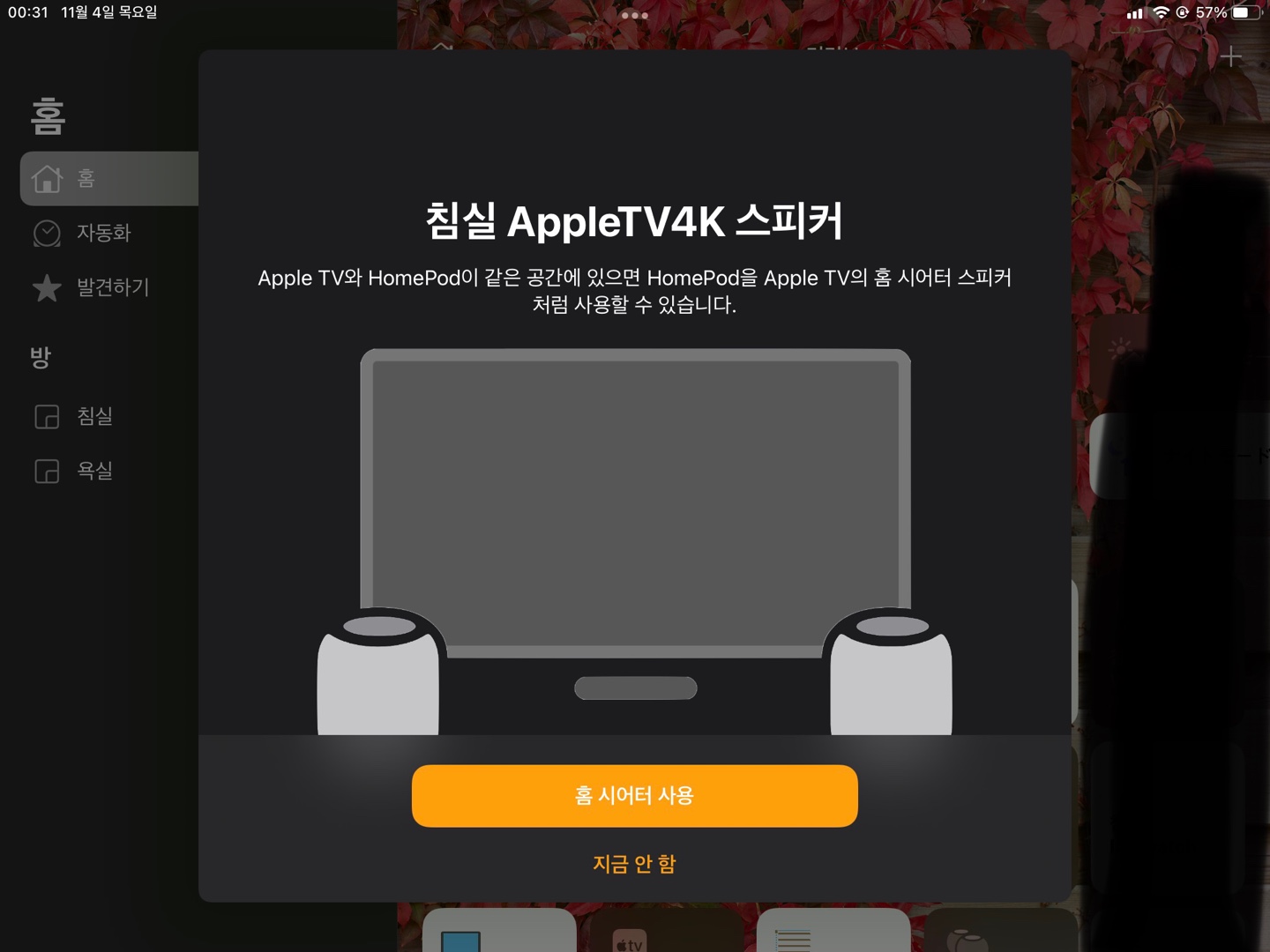 애플티비를 홈앱과 연동시키면 애플홈에 들어가면서
