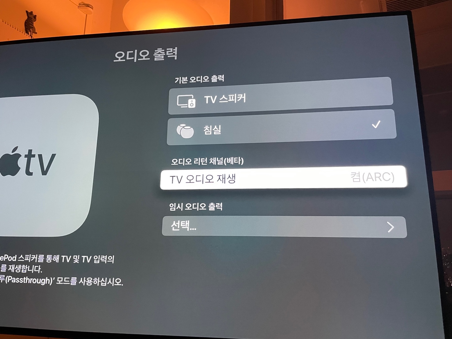 - eARC 말곤 전혀 무쓸모 애플TV.. (잠자기모드로 해놔도eARC는됨, 애플포토와 팟캐스트됨, 자체 애플뮤직 없음)