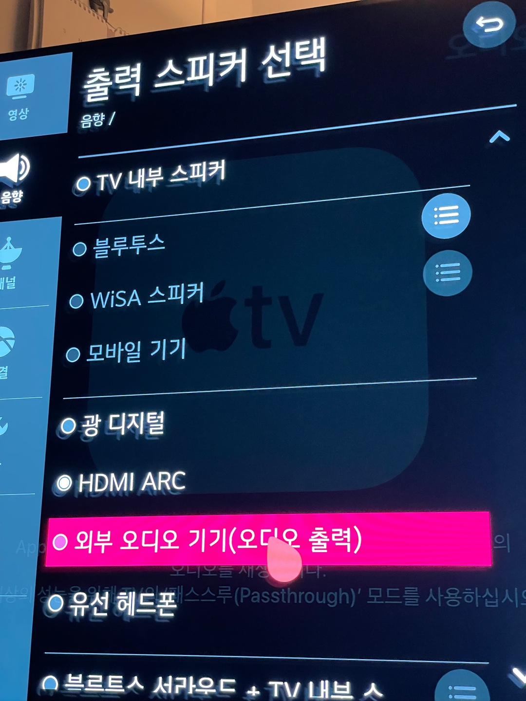 설정에서 오디오출력에 들어가면 AppleTV 15부턴