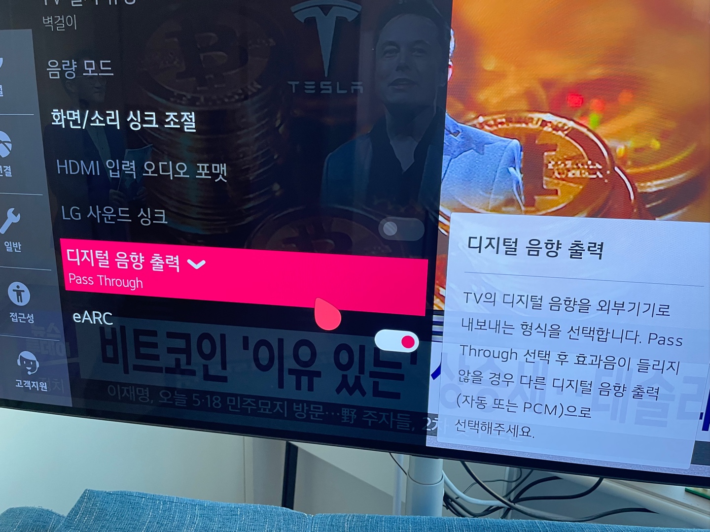 상세 설정가서 Pass Trough 로 변경, eARC 활성화