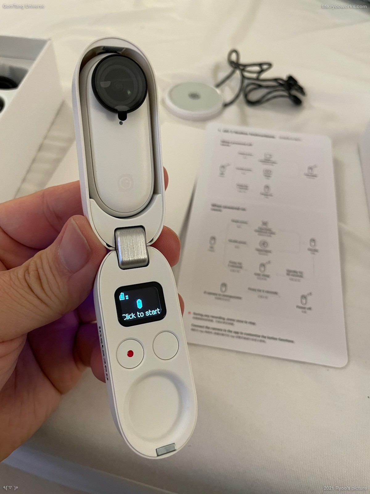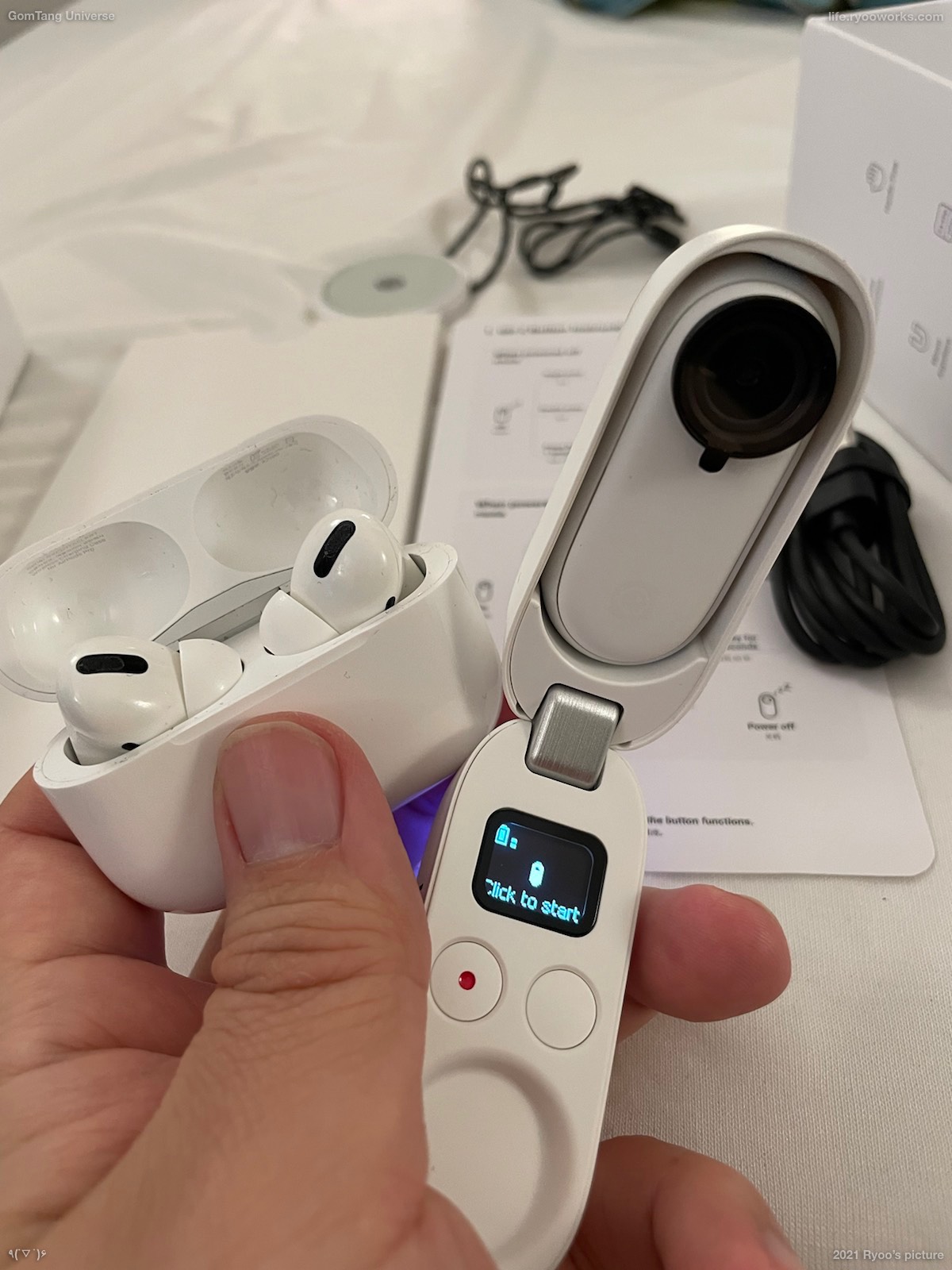 인스타360go2는 충전기+ 일체형카메라로 구성된다